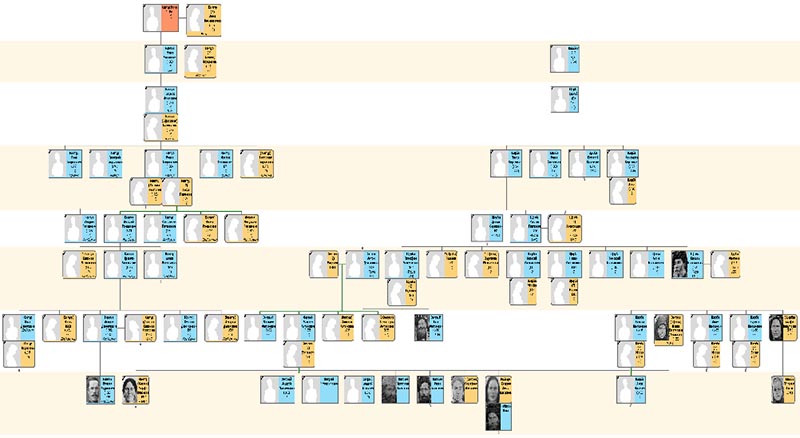 8 поколений – Кантур, Щерба и Хитрые с 1881 по 1913 (ниже эта схема подробно разобрана по семьям)