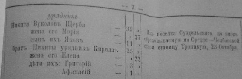 Это записи урядников – братьев Щербы Никиты и Кирилла у которых была сестра – Ирина Вакуловна Щерба (1849 г. р.).