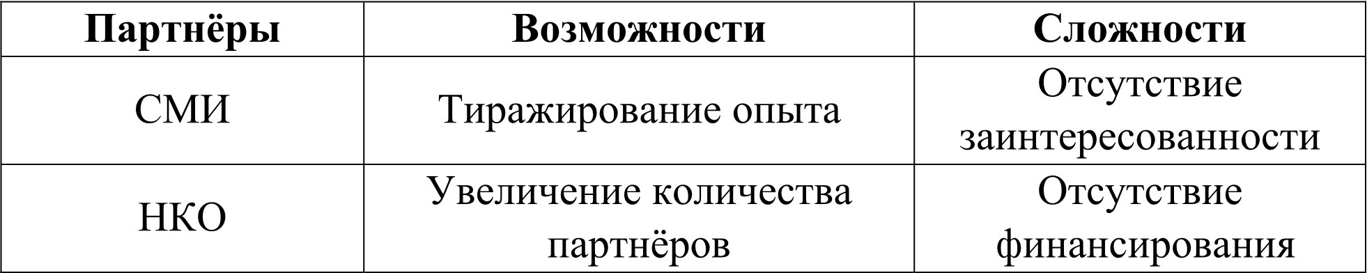 Один из способов – составление Карты возможностей и сложностей социального партнёрства (Таблица 1).