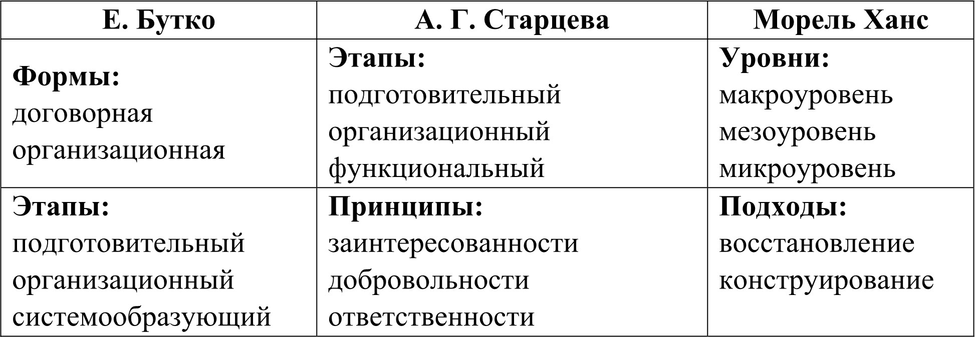 Значительный интерес исследователей к вопросу реализации в образовании механизма социального партнёрства «породил» наличие множества разнообразных трактовок данного социального феномена, как: