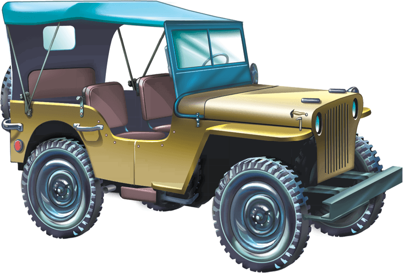 «Виллис-МВ» – эта машина была разработана автомобильной фирмой «Бантам» в 1941 году для армии США и классифицировалась как автомобиль высокой проходимости для командирского состава. Солдаты дали ей прозвище «джип», и теперь так называют любой легковой автомобиль повышенной проходимости с приводом на все четыре колеса.