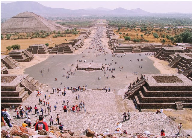 На вершины циклопических пирамид Солнца и Луны ведут ступеньки. Туристов много, и со стороны эти лестницы похожи на эскалаторы. Один поток движется наверх, другой вниз.