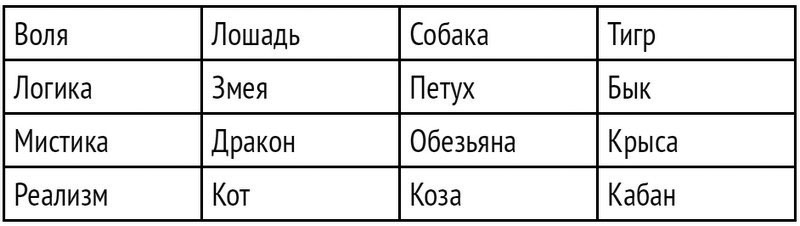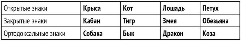 Ортодоксальные знаки(Бык, Дракон, Коза, Собака)Охрана территории, хождение по цепи кругом, нежелание расширения или углубления, а только охрана отведенного участка. Стабильность, порядок, неизменность во всем.