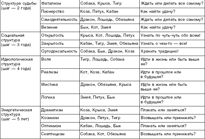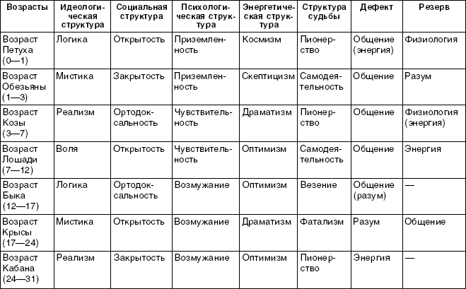 Изложение структурного гороскопа через структуры можно заменить перечислением структурных качеств каждого знака, но ведь это уже было сделано в таблице 3 («Возрастная шкала»).
