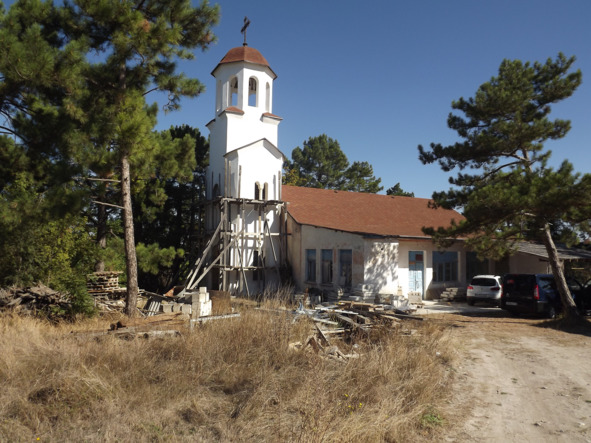 В монастыре жило пять монахов. Здесь располагалась церковь в скале с пристроем наружу. Выглядит впечатляюще. Недалеко имеется святой источник. Женщины пошли купаться в нём. Я не пошёл купаться в источнике, приехал в Крым простуженным. Давал о себе знать бронхит.