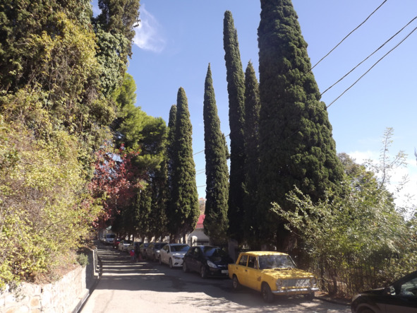 На узкой улочке, которая ведёт в посёлок, расположены лавочки, где местные продавцы продают сувениры, фрукты, вино и разную продукции. Предлагают туристические экскурсии по Крыму и городам, которые расположены вдоль Чёрного моря…