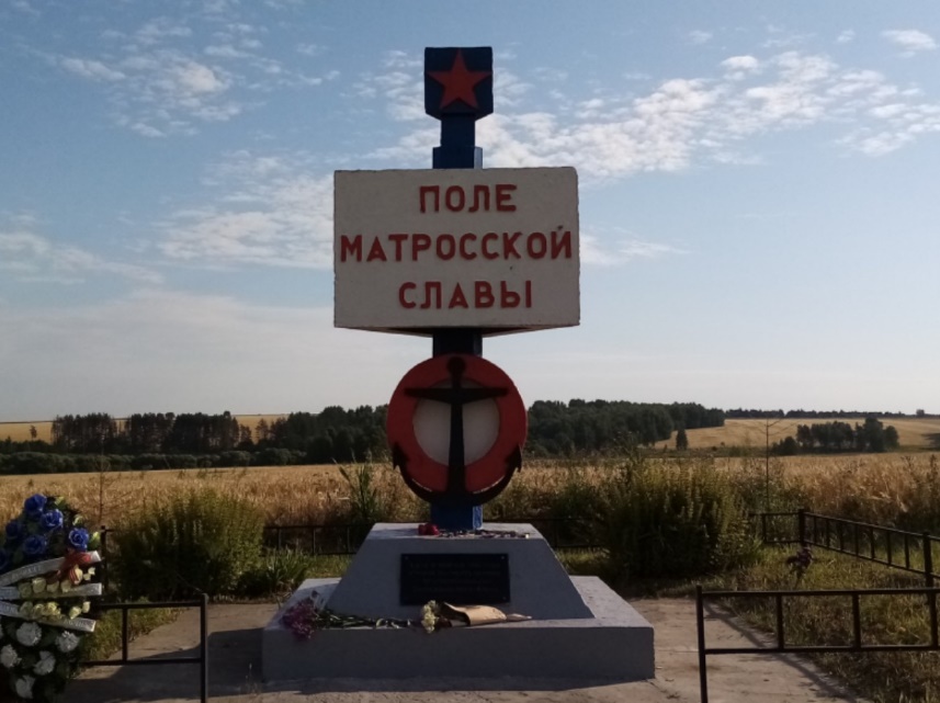 Доехав вновь до поворота на Хальзево, увидел по пути слева памятник солдатам, а ещё раньше, поднявшись на горку, заметил в поле монумент «Поле матросской славы». Он установлен в честь подвига моряков-тихоокеанцев 1-й отдельной лыжной бригады, которые погибли в боях с фашистскими захватчиками в феврале 1943 года. В посёлке сотрудница администрации Вера Николаевна Овсянникова и библиотекарь Ольга рассказали, что моряки не дождались поддержки из-за отсутствия связи и распутицы. Пришлось противостоять танкам, а в наличии имелись лишь гранаты, да и то не у всех. Тем не менее отважные моряки-тихоокеанцы бились до последней капли крови.
