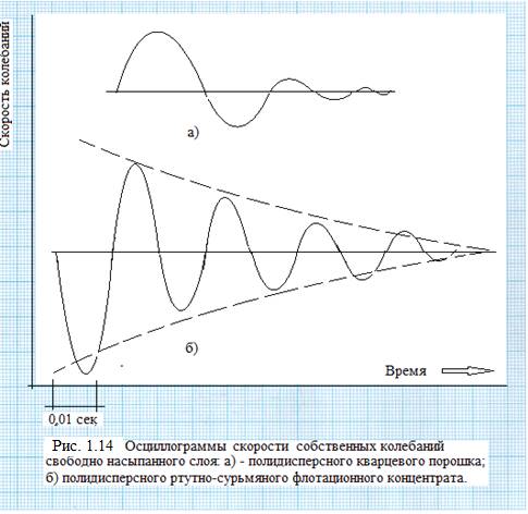 Примеры собственных колебаний свободно насыпанных слоёв полидисперсных материалов приведены и на рисунках 1.13 и 1.14.