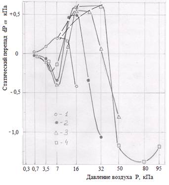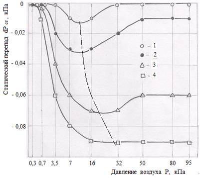 Результаты измерений статического перепада давления газа (воздуха) в вакууме при разных условиях и для разных материалов приведены на рисунках 1.2 – 1.7.