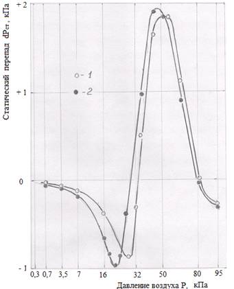 Из экспериментальных данных также следует вывод, что положительный статический перепад в слое концентрата возникает, если частота вибрации совпадает с частотой собственных колебаний виброслоя (рисунки 1.4 – 1.6). Давление газа, при котором существует такой перепад,