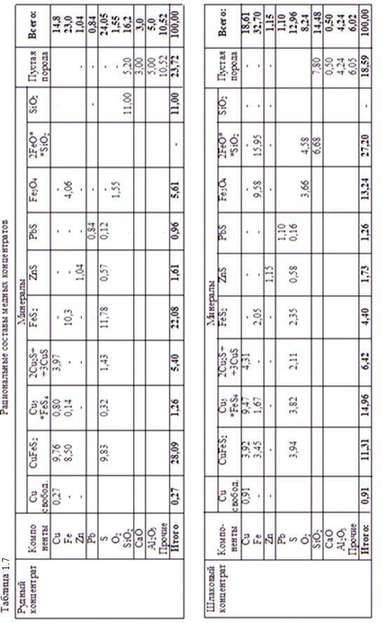 Cuх Feу Sz = 0,5хCu2S + уFeS + 0,5 (z – 0,5х – у)S2.