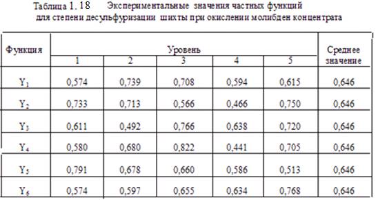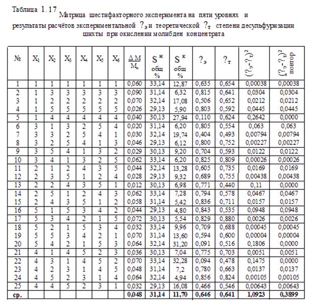 Результаты расчётов экспериментальной степени десульфуризации шихты ŋэ при обжиге по плану приведены в таблице 1.17.