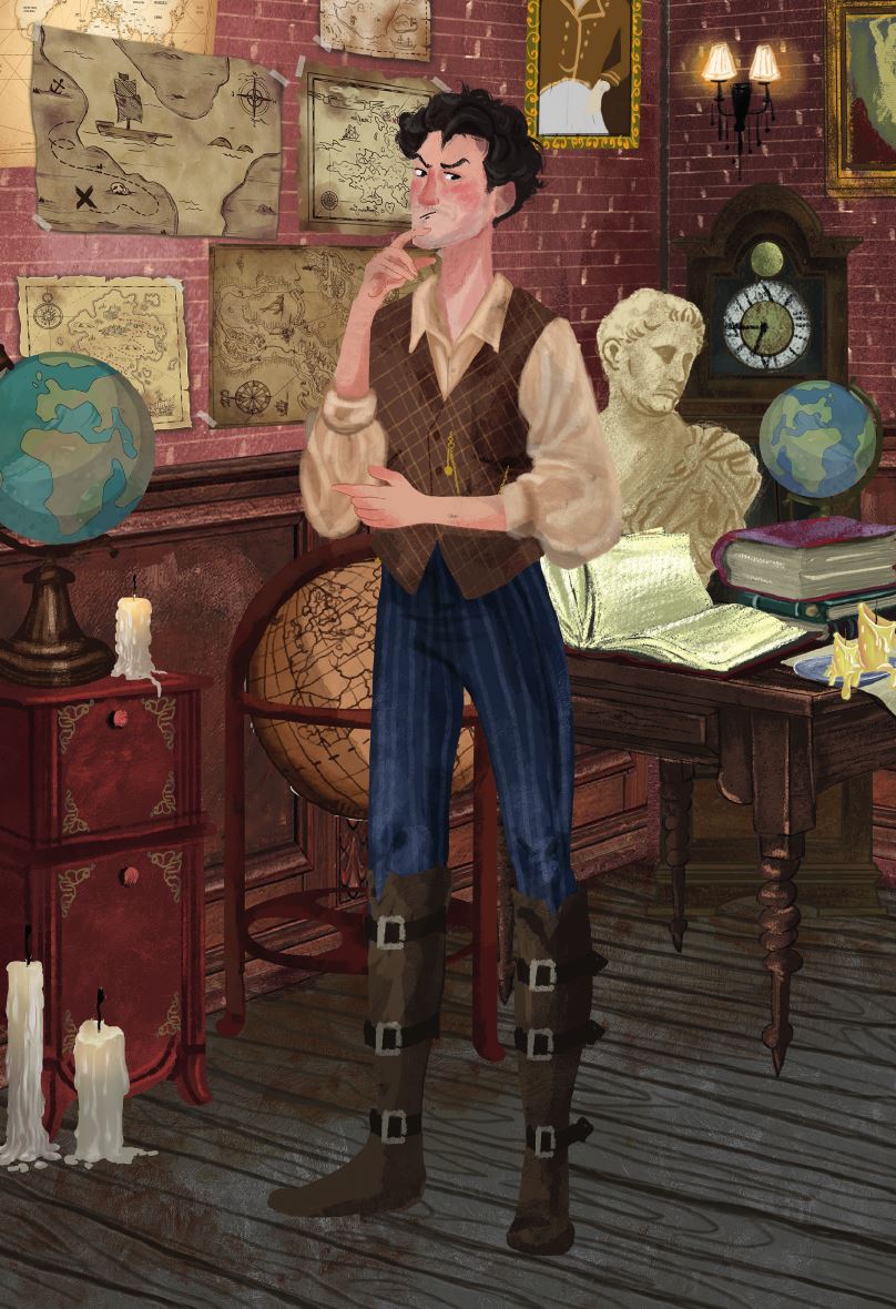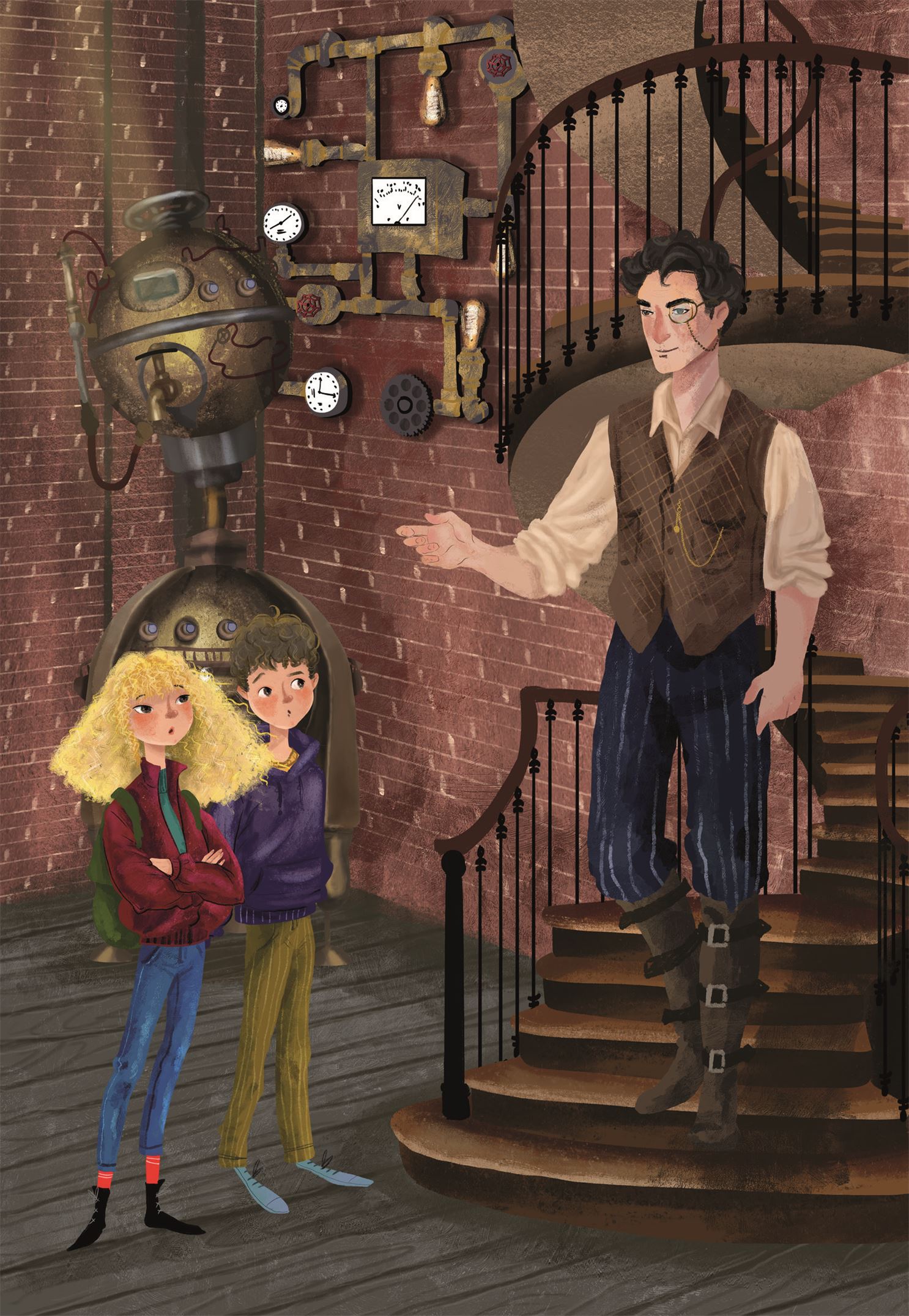 Duvarın birinde haritalar asılıydı. Bir başka duvarın önünde genişçe bir masa uzanıyordu. Masa makine parçaları ve metallerle doluydu. Onların yanında yerküreler ve dünya maketleri diziliydi. Kenardaki derme çatma bir sehpanın üstünde ise minerallerle taşlar vardı. Tuhaf şekillerde ve çeşitli renklerde bir yığındı. Odanın bir diğer ilginç yanı da tavandan sarkan pervanelerdi.