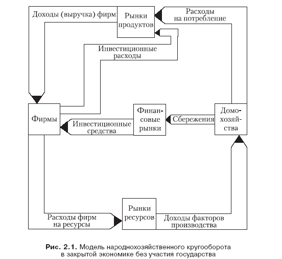 Модель кругооборота в закрытой экономике, в которой участвуют только две группы экономических субъектов: домашние хозяйства и фирмы (рис. 2.1).