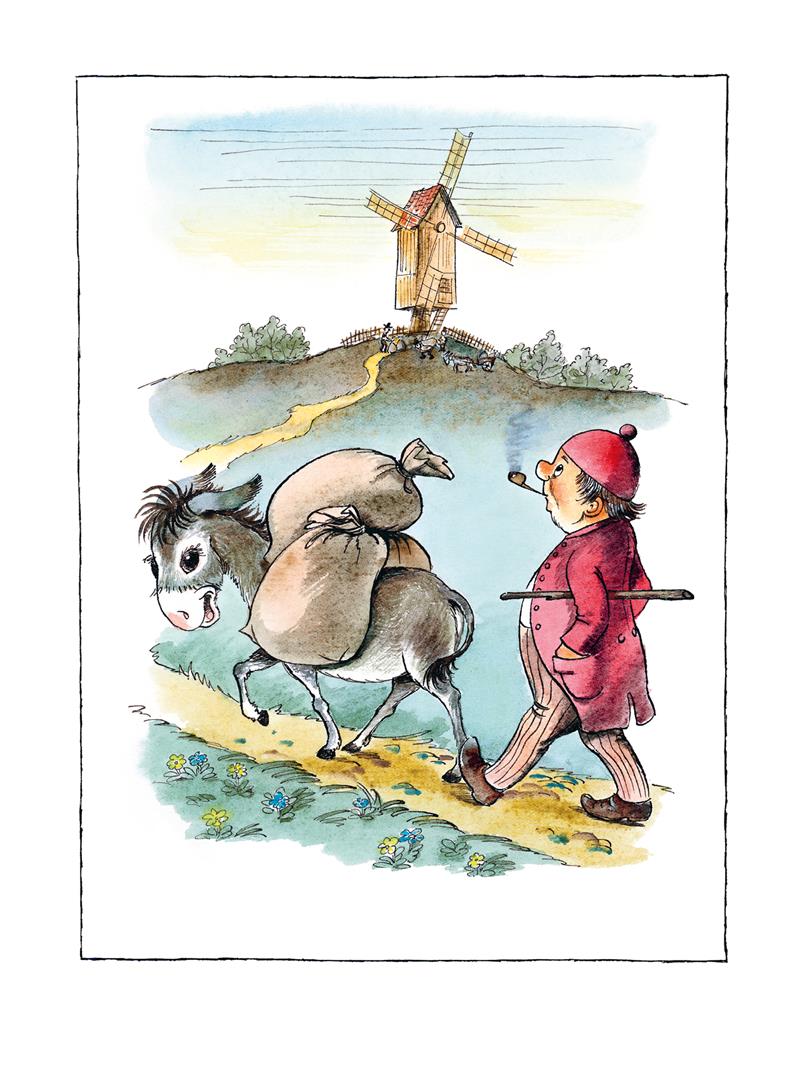 Много лет тому назад жил на свете мельник. И был у мельника осёл – хороший осёл, умный и сильный. Долго работал осёл на мельнице, таскал на спине кули с мукой и вот, наконец, состарился.