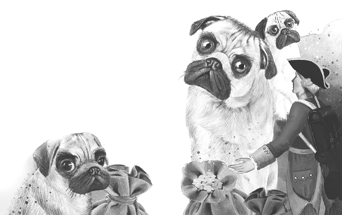 „Geld holen!“ sagte die Hexe. „Auf dem Boden des Baums gibt es drei Kammern. Die erste Kammer hat eine große Kiste mit Kupfergeld. Auf der Kiste sitzt ein Hund. Er hat ein Paar Augen, so groß wie ein Paar Teetassen. Die zweite Kammer hat eine große Kiste mit Silbergeld und einen Hund, der ein Paar Augen, so groß wie Mühlräder, hat. Die letzte Kammer hat eine große Kiste mit Gold. Ein Hund dort hat zwei Augen, jedes so groß wie ein Turm. Setze die Hunde nur auf meine Schürze, so tun sie dir nichts, und nimm aus den Kisten so viel Gold, wie du willst!“