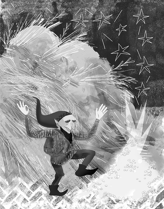9. На третий день гонец рассказал королеве, что человечка зовут Румпельштильцхен.
