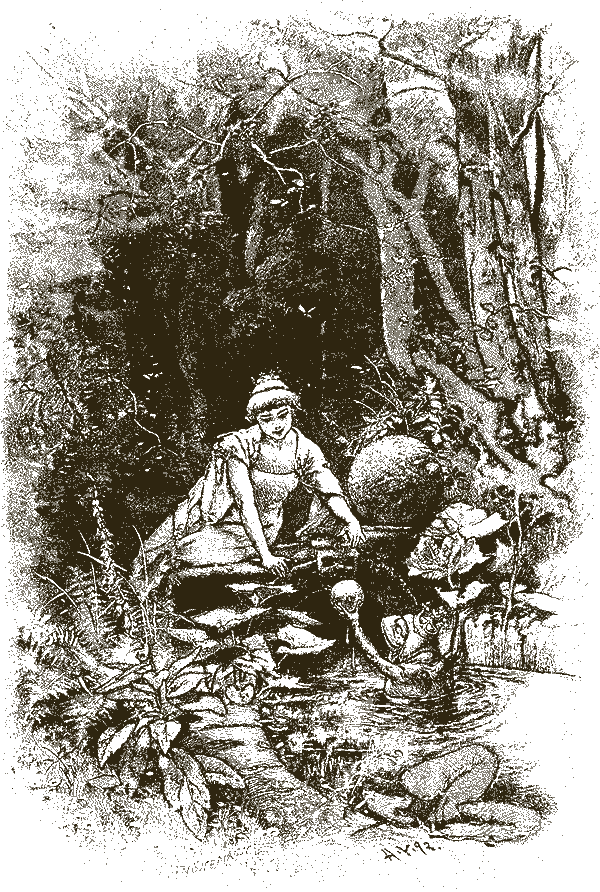 Оглянулась королевна и увидела лягушонка, высунувшего свою толстую уродливую голову из колодца.