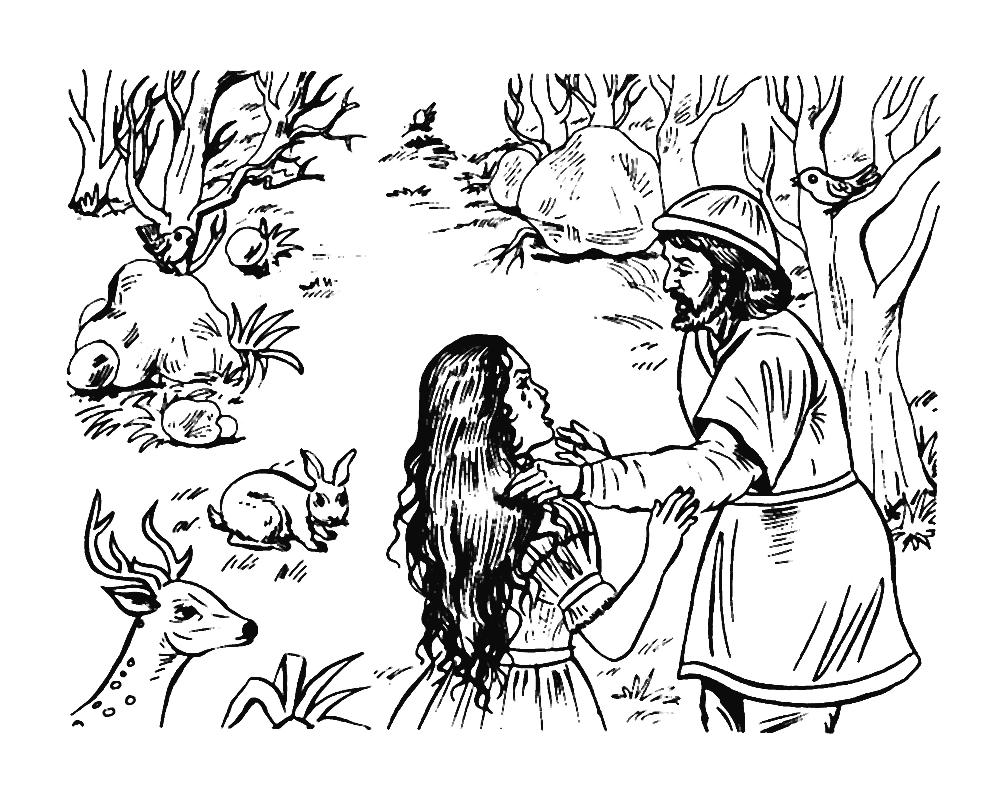 The guard was very sad. He did not want to kill Snow White. She was such a good and kind girl, and also very beautiful, too. Everybody loved her. He decided to explain why the Queen had sent them to the forest. He had been ordered, he said, to kill her and carry back her heart as proof that he had really killed her.
