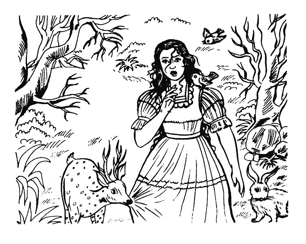 “Oh, thank you, Mother!” said Snow White happily, because she really loved the forest. She loved the birds singing the rabbits with their fluffy tails hopping in and out of holes and the gentle deer with their beautiful eyes frolicking about. They loved her too, and always came to play with her whenever she visited them.