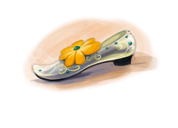 Вот наступил вечер, и собралась Золушка уходить; и хотелось королевичу её проводить, но она так ловко от него ускользнула, что он даже этого и не заметил. Но придумал королевич хитрость: он велел вымазать всю лестницу смолой; и когда она от него убегала, то туфелька с её левой ноги осталась на одной из ступенек. Королевич поднял эту туфельку, и была она такая маленькая и нарядная и вся из чистого золота.