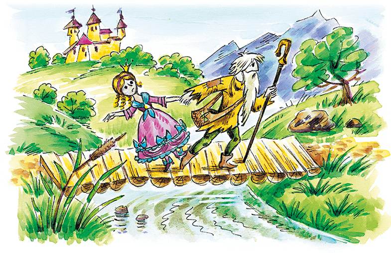 Пошли Принцесса и Нищий дальше. Видят – на лугу Старушка доит корову. Захотелось Принцессе пить.