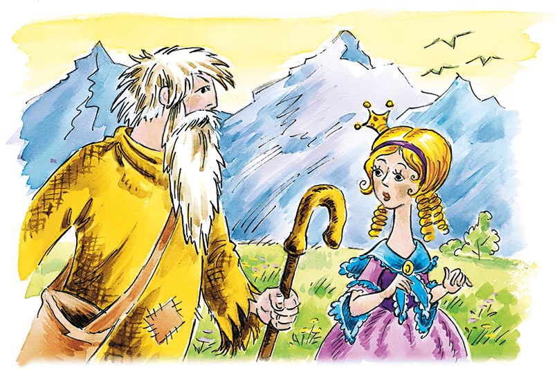 Через некоторое время к воротам королевского замка подошёл Нищий в грязных лохмотьях с длинной седой бородой. Стража гостеприимно открыла перед ним ворота.