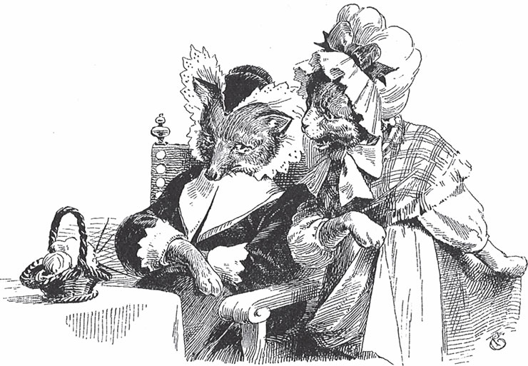 Что ты, кисонька, творишь?Спать легла или не спишь?Она отвечала:Видишь ты, что я не сплю.Хочешь знать, что я творю?Пиво я в горшке варю —Гостя пивом угощу…«Спасибо вам, кисонька, – сказал лис, – а что же поделывает госпожа лисичка?»