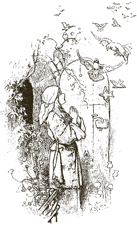 Взяла госпожа Метелица девушку за руку и подвела к большим воротам. Те распахнулись, и когда красавица очутилась под их сводом, посыпался на неё дождь золотой, так что вся она оказалась золотом покрыта.