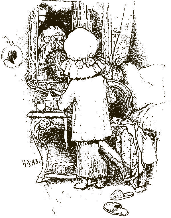 Подошла тогда Красная Шапочка к кровати, отдёрнула занавески и видит: лежит бабушка, чепчик на самый нос надвинула.