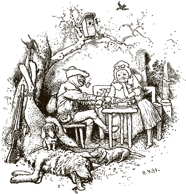 Проходил в это время мимо дома охотник и подумал: «Что это старушка так храпит? Уж не приключилось ли с ней что-нибудь?»