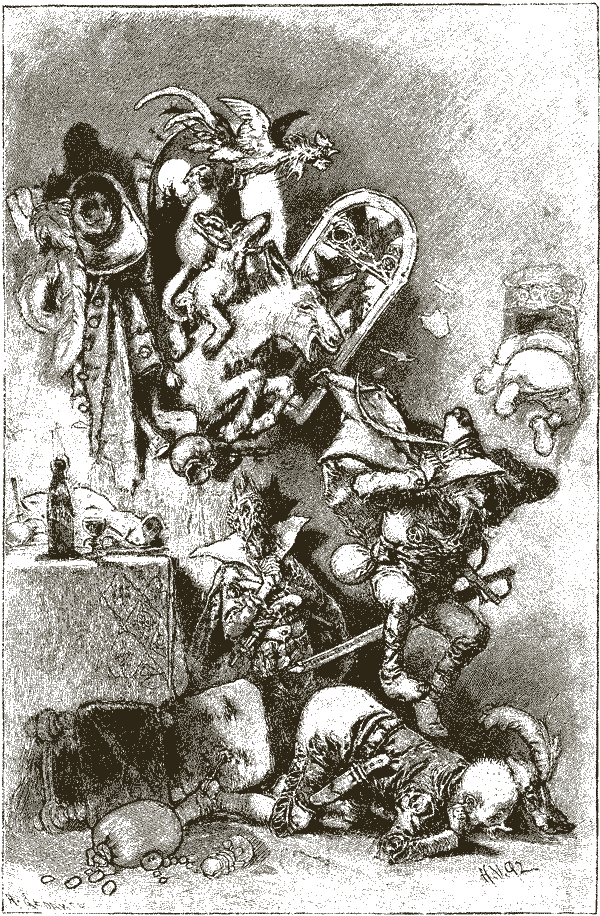 Услышали разбойники такую музыку, повскакивали с мест и в ужасе разбежались.