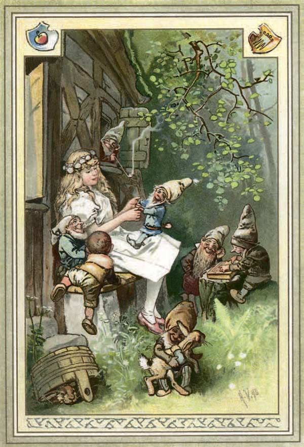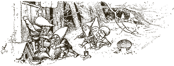 Когда совсем стемнело, пришли в хижину её хозяева – семь гномов, которые весь день в горах руду добывали. Зажгли они семь свечей и увидели, что кто-то в доме побывал.