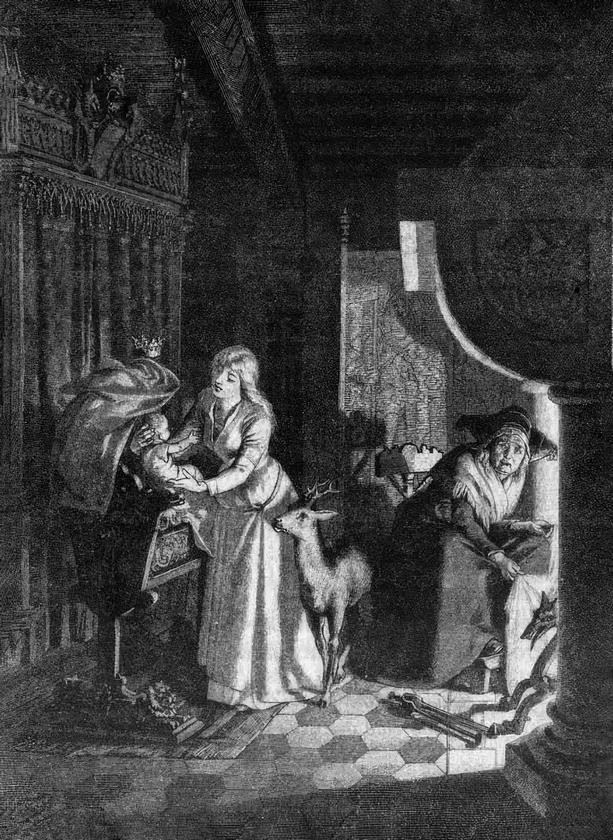Что, мое дитятко? Что, козлик мой?Приду еще раз я и уйду на покой.И затем стала нянчиться с ребенком, как и в предыдущие посещения, и потом исчезла. Король не решился с нею заговорить, но не спал и в следующую ночь. И опять она повторила: