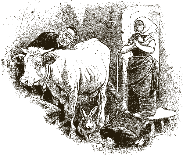 Служанка как раз в это время доила корову и, когда услышала слова малютки, перепугалась так, что упала со скамеечки и молоко пролила. Побежала она к хозяину и говорит: