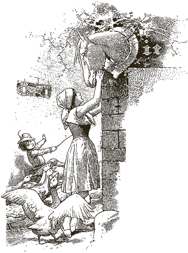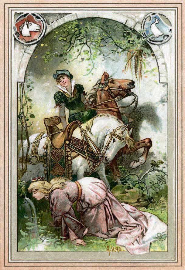 – Вот сижу я здесь, бедная, всеми покинутая! Королевна я по рождению, но лукавая камеристка силой заставила меня скинуть богатое платье и заняла моё место рядом с королевичем. Приходится мне гусей пасти и выполнять чёрную работу. Если бы знала об этом моя матушка, у неё сердце от горя разорвалось бы!