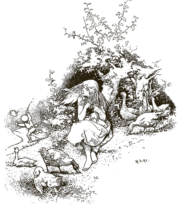 Задумался старый король и решил, что девушка будет помогать его мальчишке-слуге Кюрдхену гусей пасти.