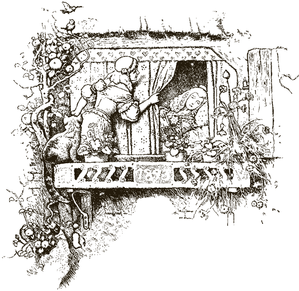 Они приласкали крошку, напоили, накормили, даже новую пару платья ему сшили, потому что его одежонка во время странствий совсем истрепалась.
