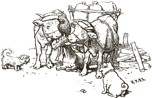 Оказалось, что везли мужики дрова на продажу, у одних в повозки были запряжены лошади, у других – волы. По дороге у одного из мужиков лошадь ожеребилась, но жеребёнок убежал и прилёг между двумя волами у другой повозки.