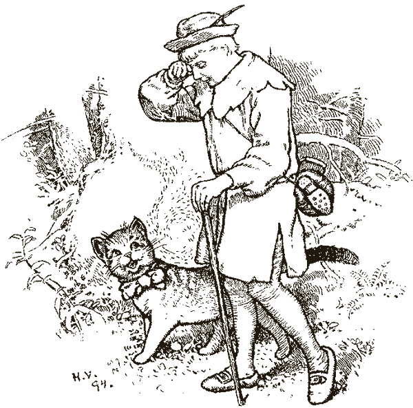 Поверил Ганс кошечке и пошёл домой без коня и в старом кафтане, который за семь лет поистрепался, стал ему короток и узок.