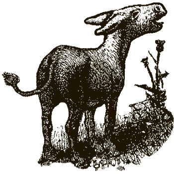 На следующий день скинула девушка с себя всю одежду и завернулась в рыболовную сеть – значит, была она ни одетая, ни нагая. Затем наняла ослика, чтобы тот тащил её, и привязала сеть к хвосту – таким образом девушка ни верхом не ехала, ни в повозке. А тащить ослик должен был её по колее, да так, чтобы она только большим пальцем земли касалась, – выходило, что ехала умница ни по дороге, ни без дороги.