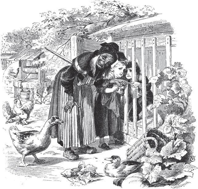 Вот и стали бедному Гензелю варить самое вкусное кушанье, а сестричке его доставались одни только рачьи шейки. Каждое утро пробиралась старуха к его стойлу и кричала ему: «Гензель, протяни-ка мне палец, дай пощупать, скоро ли ты откормишься?» А Гензель просовывал ей сквозь решетку косточку, и старуха, подслеповатая, не могла приметить его проделки и, принимая косточку за пальцы Гензеля, дивилась тому, что он совсем не жиреет. Когда прошло недели четыре и Гензель все по-прежнему не жирел, тогда старуху одолело нетерпение, и она не захотела дольше ждать. «Эй ты, Гретель, – крикнула она сестричке, – проворней, наноси воды: завтра хочу я Гензеля заколоть и варить – каков он там ни на есть, худой или жирный!» Ах, как сокрушалась бедная сестричка, когда пришлось ей воду носить, и какие крупные слезы катились у нее по щекам! «Боже Милостивый! – воскликнула она. – Помоги же Ты нам! Ведь если бы дикие звери растерзали нас в лесу, так мы бы, по крайней мере, оба вместе умерли!» – «Перестань пустяки молоть! – крикнула на нее старуха. – Все равно ничто тебе не поможет!»