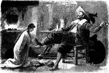 Когда королевна вымела комнату, он подозвал ее к своему стулу, протянул ей ноги и сказал: «Сними с меня сапоги!» – швырнул ей свою обувь, а она вынуждена была сапоги поднять, вычистить и глянец на них навести.