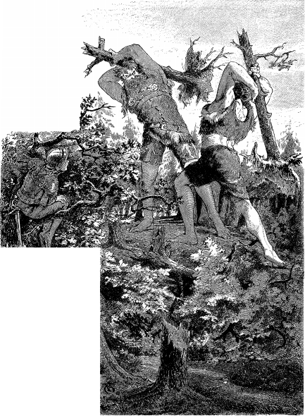 Те не хотели ему верить и въехали в лес: там нашли они великанов окровавленных, а кругом них лежали вырванные с корнями деревья.
