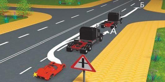 По какой траектории вы имеете право выполнить разворот, управляя автопоездом, имеющим большую длину?
