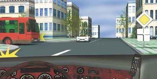 2. Убедитесь, что легковой автомобиль уступает дорогу, и проедете перекресток первым.