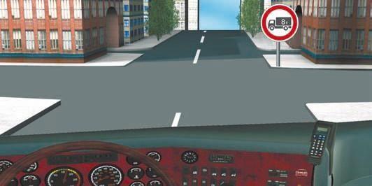 Разрешено ли вам продолжить движение в прямом направлении на грузовом автомобиле с разрешенной максимальной массой более 3,5 т?