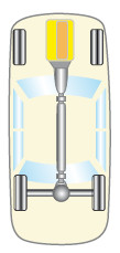 Заднеприводные – автомобили, у которых крутящий момент от двигателя передается на задние колеса (рис. 1.10).