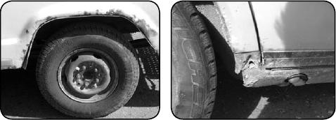 ► Недостаточно регулярное мытье автомобиля. В результате на поверхности автомобиля возникает абразивный слой из частиц пыли, который при первом же дожде смывается, оставляя микроскопические царапины. Эти царапины впоследствии могут стать очагами коррозии или вызвать растрескивание лакокрасочного покрытия (как бы ни были малы царапины, цельность и монолитность покрытия уже утрачена). Особенно этому подвержены колесные арки, молдинги и др. (рис. 1.5 а, б).