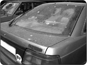 ► Отсутствие мытья автомобиля после «птичьих неожиданностей». «Птичьи неожиданности» (рис. 1.6) способны обесцветить любую краску, не зря ведь у птиц «прямой провод», то есть очень быстрое переваривание пищи. Вот и подумайте, если птица за минуту переваривает зерно, то за какой срок ее желудочный сок растворит автомобильную эмаль. То же относится к раздавленной мошкаре. Некоторые насекомые обладают высокой кислотностью (или щелочностью), а кислота и щелочь нарушают целостность лакокрасочного покрытия: появляются обесцвеченные пятна, покрытие становится точечно хрупким, могут появиться микротрещины и, как следствие, очаги коррозии.